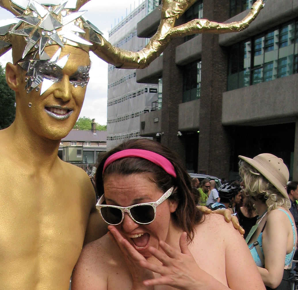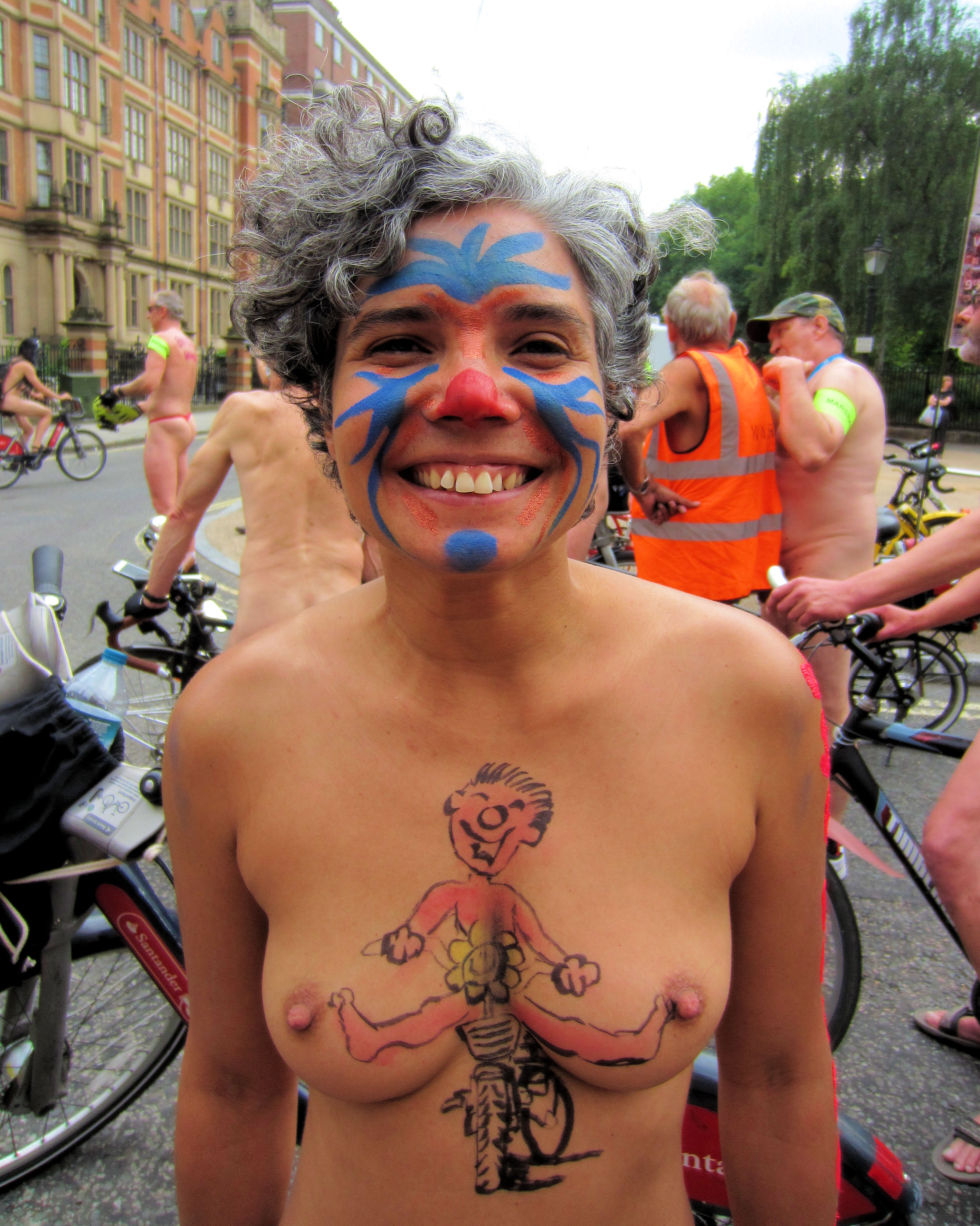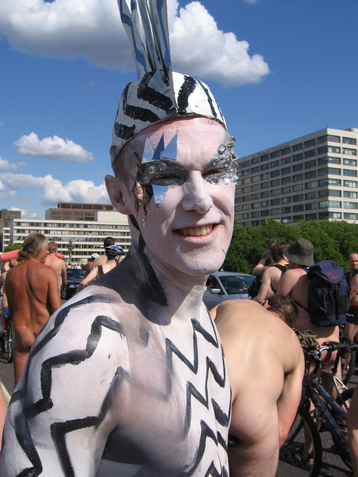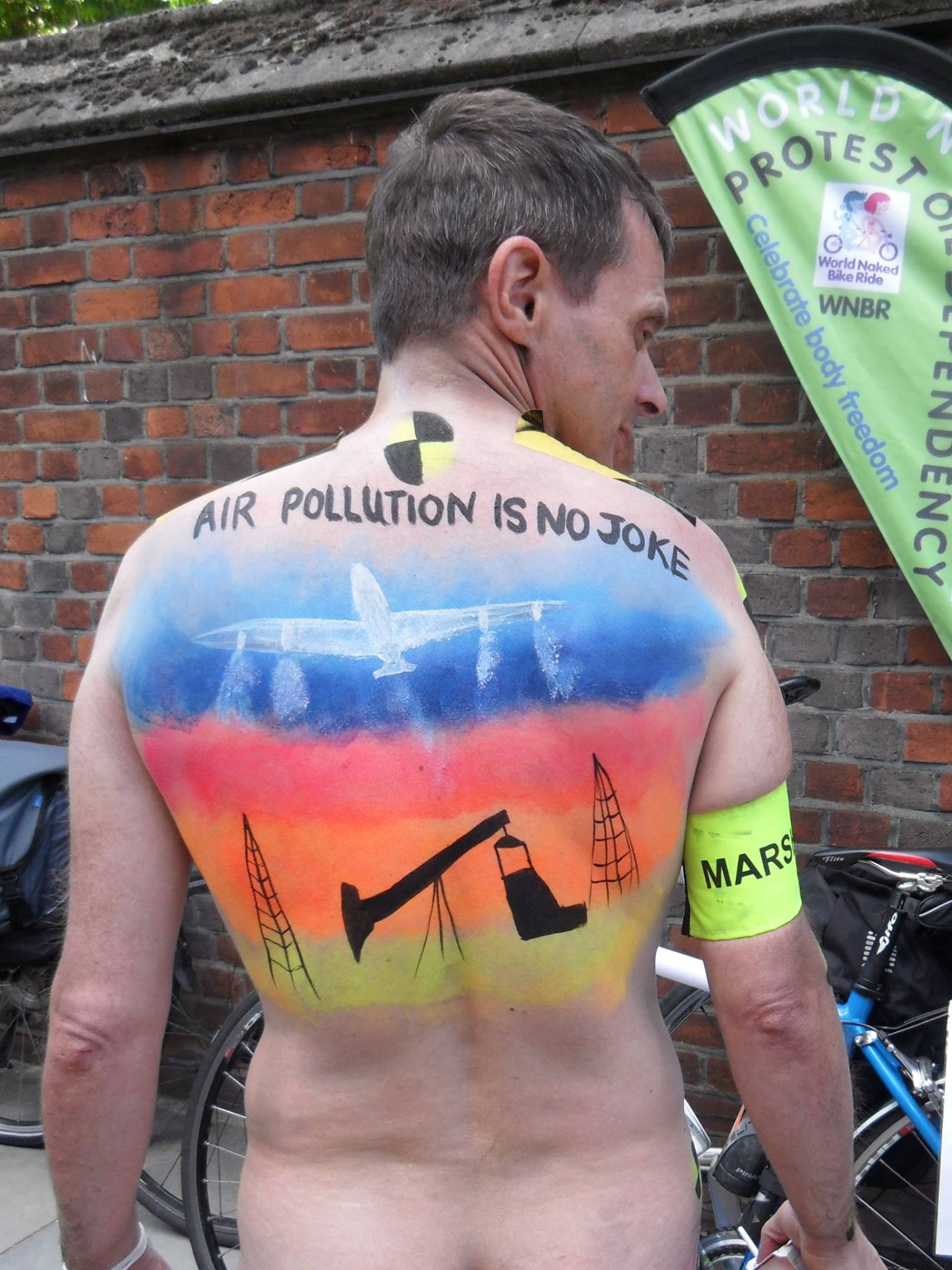 We would like to see body painters at all the starts and where possible in convenient locations earlier in the day. Body paint gets our messages across and also adds to the carnival atmosphere of the ride. It can also be a good way to go naked but not put everything on display. Body painting can be very simple or very elaborate!