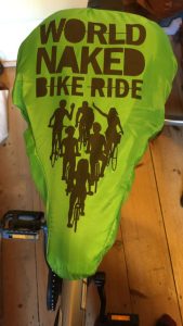 If you are hiring or borrowing a bike, and you have a bare bum, you should cover the saddle. This will protect you from any dirt, as well as being polite to the next person who uses the bike. You can purchase a 2019 edition WNBR seat cover for £2 at the start points. You might alternatively use some of your clothes to make a temporary cover.